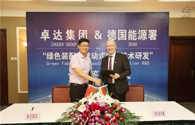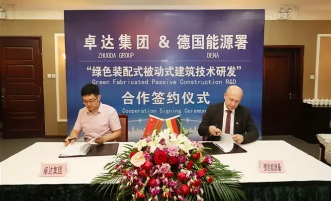 在河北唐山举行的"第三次中国-中东欧国家地方领导人会议暨2016年中国·河北国际经济贸易洽谈会"上,卓达集团与德国能源署签署合作协议,共同就绿色装配被动式建筑技术研发展开全面合作.这是世界顶级的绿色装配式建筑体系与世界顶级的被动式建筑技术的强强联合,将进一步巩固卓达绿色建筑世界独一无二的市场地位,树立世界绿色装配被动式建筑"卓达标准",在中国及世界范围快速推广.