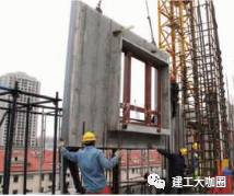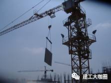 (3)当预制混凝土墙板吊起距地500mm时稍停,去掉保护预制混凝土墙板垫木及支腿,然后经信号员指挥,将预制混凝土墙板吊运到楼层就位。在起吊过程中,塔吊提升与转臂不可同时进行,确保安全。