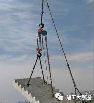 当预制楼梯两端有出筋时,吊装时使用手拉葫芦,调节楼梯上下两端的相对标高,便于安装。