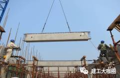 次梁吊装须待两向主梁吊装完成后才能进行,吊装前须检查好主梁吊装顺序,确保主梁上下部钢筋位置,然后安装次梁。