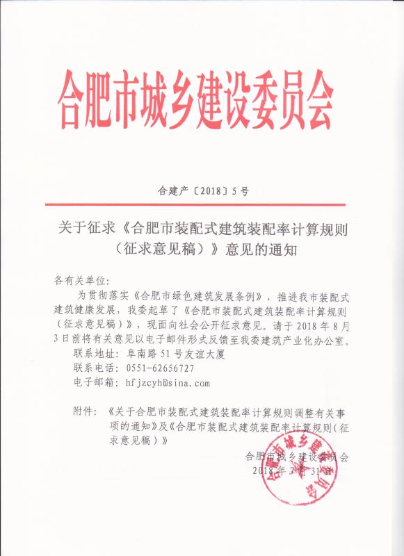 关于合肥市装配式建筑装配率计算规则调整有关事项的通知