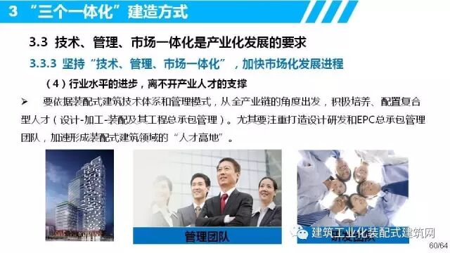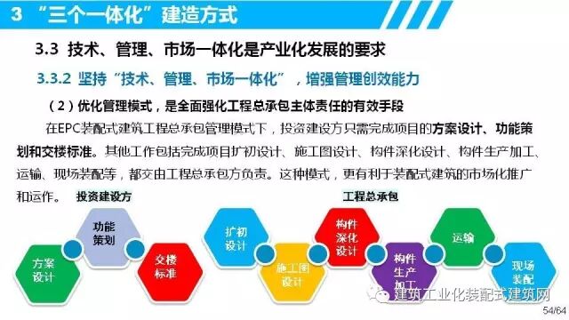 中国建筑股份有限公司副总工程师、中建科技集团有限公司董事长叶浩文以《装配式建筑“三个一体化”建造方式》为题,从顶层设计层面指出:发展装配式建筑,要遵循系统性装配、工业化生产和产业化发展的发展规律,大力推行“结构、机电、装修一体化,设计、生产、装配一体化,技术、管理、市场一体化”的建造方式。强调全行业应切实找准发展装配式建筑的发展路径和实施方法,围绕“科技引领、设计支撑、精益加工、集成装配、品质保障、三个一体化建造方式”,凝聚发展共识,抓住发展机遇,全面提升产业化发展能力,共同迎来装配式建筑的黄金时代!